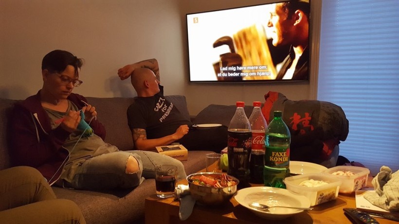 Vel hjemme efter en små 30 i og omkring Munkebo, vat det tid til part 2 af dagens “carbo loading” is og blandselv slik i rigelige mængder, samt en god film på fjernsynet. Så pigerne fandt strikketøjet frem og vi drenge fik spist igennem, igen 🙂